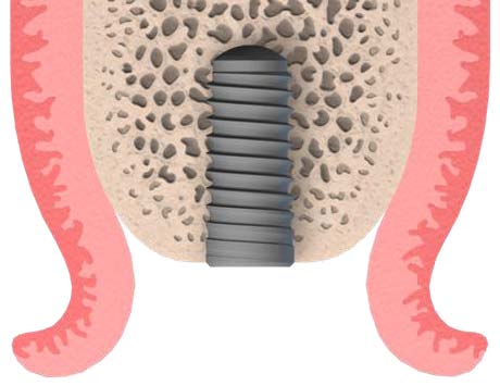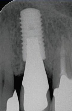 Теперь несколько слов о концепции переключения платформ. Суть её заключается в том, что толщина абатмента уже платформы имплантата в месте соединения с имплантатом (Рис. 1). Что это дает? По имеющимся наблюдениям это предотвращает краевую резорбцию кости, в особенности с субкрестальной установкой имплантата (Рис. 2).